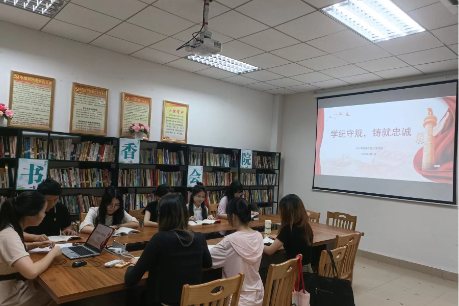 为推进党纪学习教育走深走实,引导全体党员进一步增强对党忠诚的思想自觉,严守底线。6月4日,会计学院学生第三党支部开展主题为“学规守纪,铸就忠诚”的党纪学习教育专...