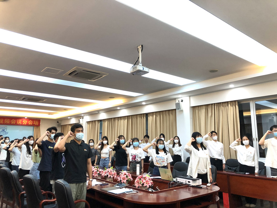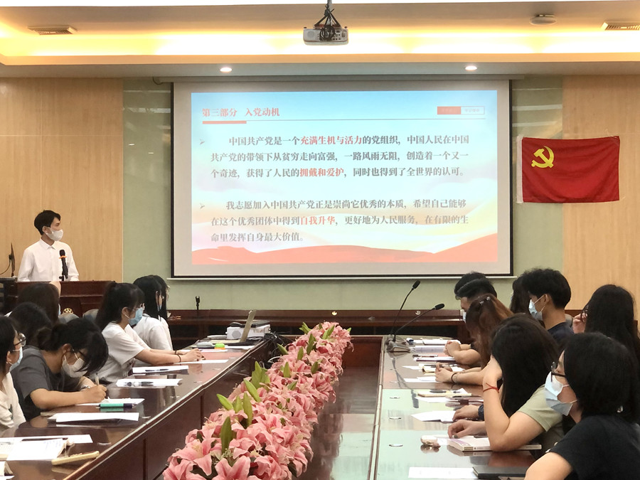 会上,由主持人宣读答辩流程,由1名预备党员及6名发展对象依次进行了答辩。他们分别就一年来的思想、学习、工作、生活等各方面的情况进行了汇报,同时,也对存在的问题和努力方向进行阐述。随后,预备党员和发展对象随机抽取有关党章、党规、时政方面的题目进行答辩。支部党员根据预备党员及发展对象在培养考察期内表现,以及现场的答辩情况进行自由发言,对申请转正的预备党员还有发展对象提出了意见和建议,申请人当即接受并表明了自己的态度,表示今后会改进不足,严格要求自己。经与会正式党员的一致表决,同意叶新妮同志的转正申请和叶宴廷等6名发展对象的入党申请。最后由党支部书记邓欣玲同志宣读最终决议结果并带领全体党员进行重温入党誓词和入党誓词。