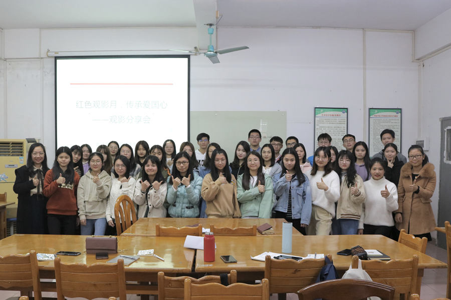 为加强思想政治引领,坚定文化自信,教育引导大学生弘扬爱国主义、传承红色基因,会计学院18级学生党支部于2019年12月19日在一教406举办“红色观影月,传承爱国心”观影分享会。