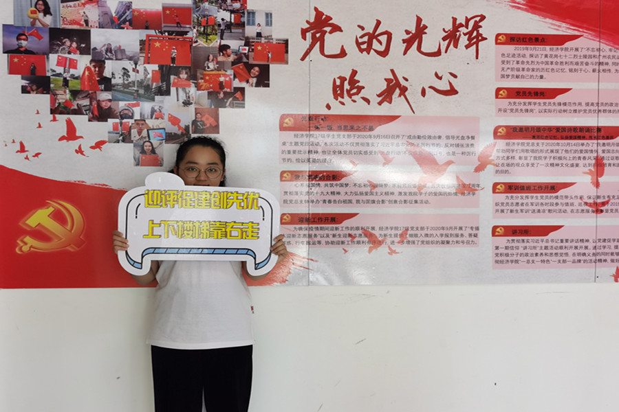 为庆祝建党一百周年,激发广大同学爱党爱国热情,学习党之精神,发扬党之作风。同时鼓励同学们积极参与学院迎评促建的工作,引导我院同学掀起学习评估知识的热潮,营造“人人关心评估,人人了解评估,人人参与评估”的浓厚氛围,使同学们更加了解学校办学条件、办学质量,更好地迎接本科教学评估工作,向建党一百年献上满意的答卷,会计学院19级学生党支部在学院党总支的领导下,特开展“展广商形象,迎合格评估,庆建党百年之‘校荣我荣’” 主题党日活动。参与此次活动的成员为会计学院19级全体学生,活动由徐文慧同学主持。