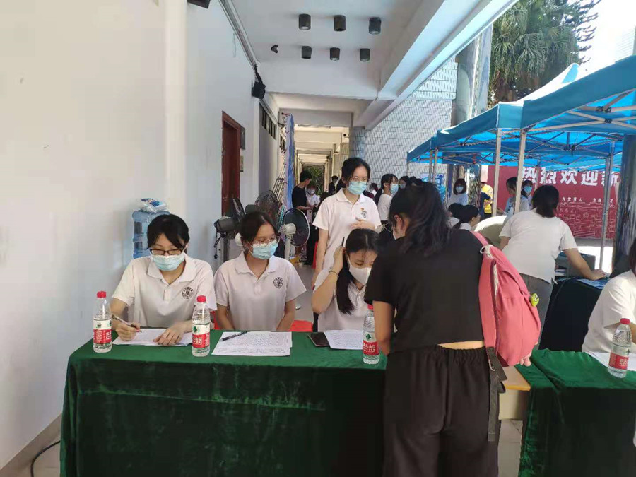 迎新现场中,有欢迎的红幅、人性化的指示牌、专车接送等,校内还设置了多个迎新服务岗位,最大限度地为新生的入校提供便捷的服务。在门口接待处,志愿者们面带微笑,穿梭于迎新现场中,主动为新生搬运行李,并对校园环境及学院办学质量等情况进行介绍。在咨询处,工作人员提供相关的咨询服务,耐心地为新生解答各种疑问。在注册报到处,助理辅导员依次地指引新生们就身份认证、费用缴纳、资料交接等一系列相关的入学手续进行注册报到。在钥匙领取处,工作人员分发钥匙、安排登记入住并安排工作人员陪同新生们前往宿舍帮忙整理。从门口接待、注册报到、钥匙领取到宿舍安排入住,一项项的热情贴心服务,环环相扣,支部党员们各司其职,互相帮助,整个迎新活动流程有条不紊地进行。
