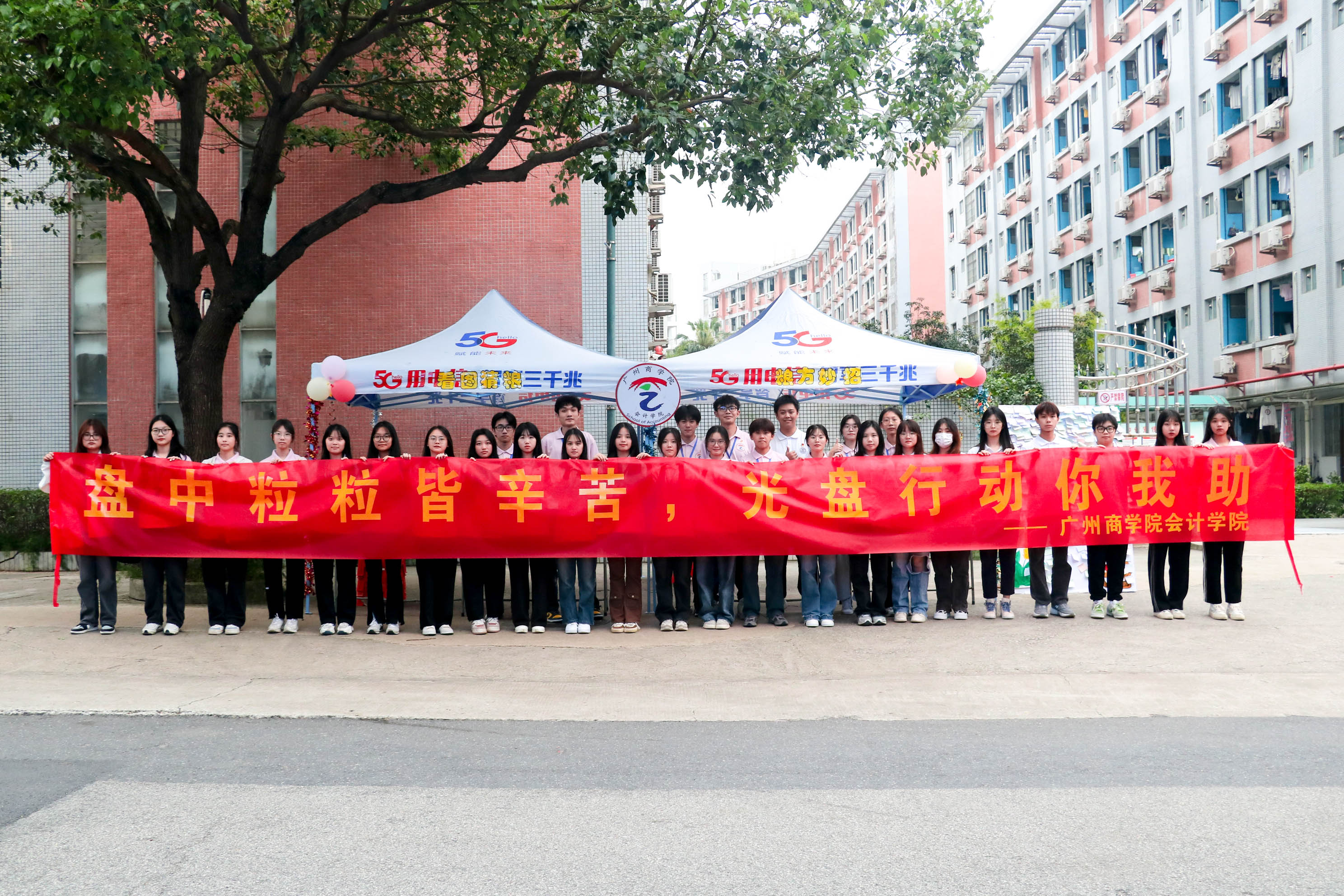 为贯彻落实习近平总书记关于制止餐饮浪费行为的重要指示精神,增强广大师生节粮爱粮的意识,弘扬勤俭节约的传统美德,切实培养同学们节约粮食的好习惯。广州商学院会计学院21级党支部于4月13日下午15:00-18:00在第二行政楼前空地协助会计学院学生会一同举办了以“盘中粒粒皆辛苦,光盘行动你我助”为主题的节粮户外素质拓展活动。
