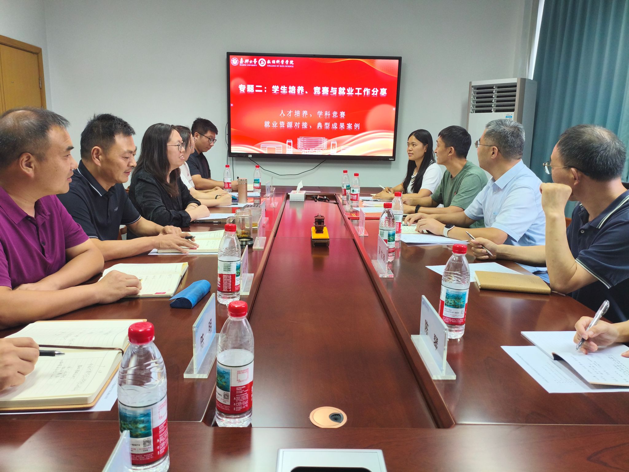 座谈结束后,与会人员在博学楼前合影留念。此次调研交流内容充实、务实高效,不仅深化了双方在专业建设与人才培养方面的互学互鉴,更以党建共建为纽带,为未来在教学改革、竞赛协同、资源共享等方面拓展合作空间奠定了良好基础。