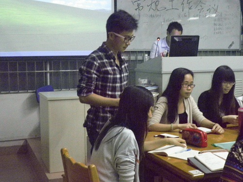 12级辅导员汤振华老师主持了这次的会议,在会议伊始,汤振华老师以轻松的口吻与到场的学长进行交流,明确学长制与代班之间的联系与区别,循循教导令在场的学长都深有体会,手中的笔也在纸上不停的跳跃;汤老师强调学长要将工作细化,跟进到师弟师妹们的宿舍里,更好的了解他们的生活、学习和工作,与此同时,汤老师要求学长们要以身作则,用实际行动去引导师弟师妹们;在帮助他们解决问题的同时,自身的工作经验也在悄然中积累了起来。