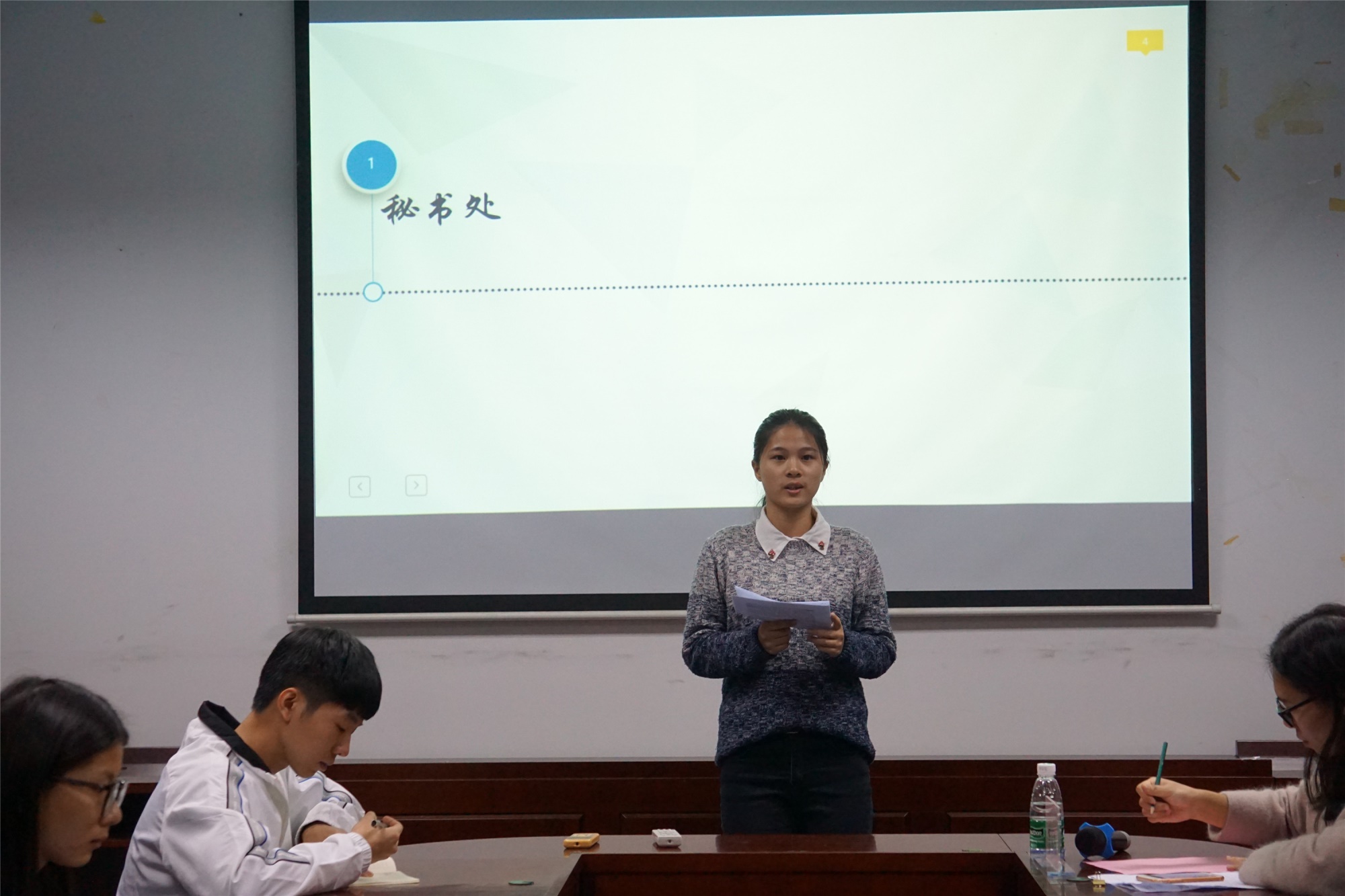 会议上,各部门依次对本学期部门工作进行总结,干部们首先回顾本学期部门的各项工作开展情况,总结工作的经验和特色亮点,也谈及需要改进之处,并提出相应的解决方案。会计学院团委副书记谢莹莹也对团委工作进行总结——全面提升干部素质,建设高效工作团队,她从五个方面总结本学期团委工作,一是立足新时代,深入学习贯彻党的十九大精神;二是全面提升干部素养,青马工程助力建设团队;三是塑造“四有”青年,提升团员思想觉悟;四是聚力实践,“启航”打造创新创业团队;五是搭建“悦读”平台,推进“书香广商”建设;同时,她也强调会计学院团委要继续加强部门内部组织建设,打造朝气蓬勃、求真务实、奋发有为的干部队伍,开展高水平的活动,引导青年团员提高思想觉悟,投身到活力基层的建设中来。