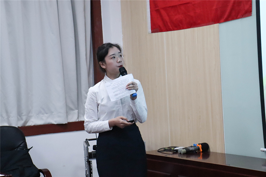 谢桉琦为本次活动致辞。她先对本次主题团日设计大赛的十个团支部的精彩展示表示感谢,同时也对团支部的成员提出了三点要求:一是应时刻亮身份,提高佩戴团徽的意识,亮出团员的身份;二是策划案应提高完整度,完备策划案;三是团日活动应多做规划并结合实际。对于本次参赛,她对各参赛团支部提出四点建议:一是密切围绕主题展开;二是采取多形式丰富活动;三是采取多角度多方面升华主题;四是凸显主题的主次方面。