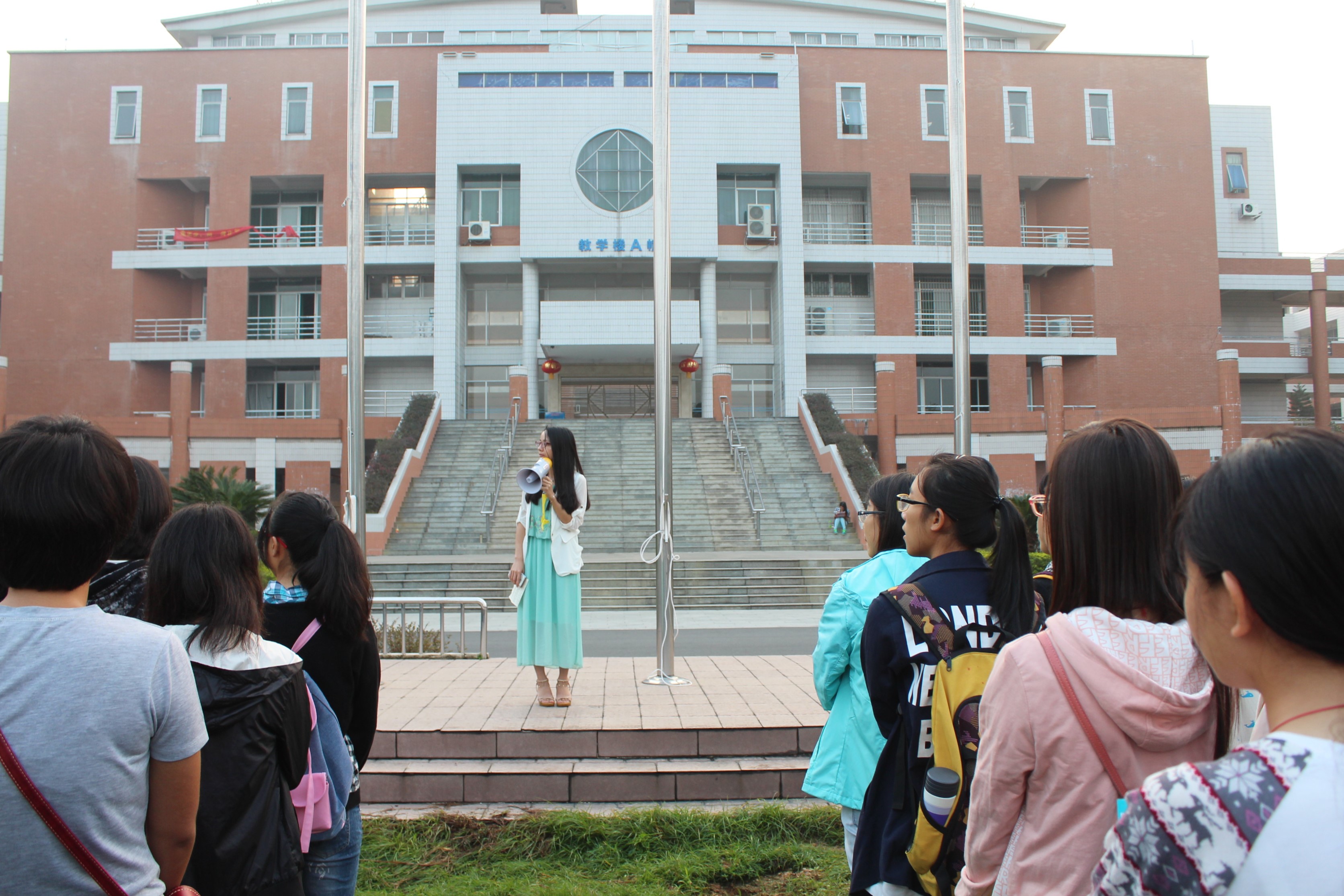 伴随着庄严的国歌,五星红旗冉冉升起,在场的同学们行严肃的注目礼,心中一团团热火开始燃烧,为我们伟大祖国的日益繁荣昌盛而自豪,在场气氛十分庄严。升旗完毕后,辅导员罗彩玲就“如何过好大学生活”作了讲话。罗老师向同学们给出三点建议:一是转变学习方式;二是积极融入集体;三是学会分享,善于分享。大学生活是多姿多彩的,罗老师希望同学们能善于与他人分享,分享快乐或者难过的事,让自己做一个脱颖而出的学生,同时,还向同学们提出了一些新生应该注意的事项。