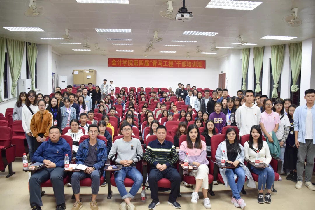 为深入推进青年马克思主义者培养工作,进一步提高学生干部的综合素质和能力,提高学生干部的思想道德素养,培养学生干部的优良作风。会计学院2019年第四届“青马工程”培训班开班仪式暨专题讲座于11月20日晚在四教第二报告厅举行。学院党总支书记钟远辉、团委书记廖秀娟、学生会指导老师张振华、辅导员段姣和邓雪梅以及全体学生干部参加仪式。