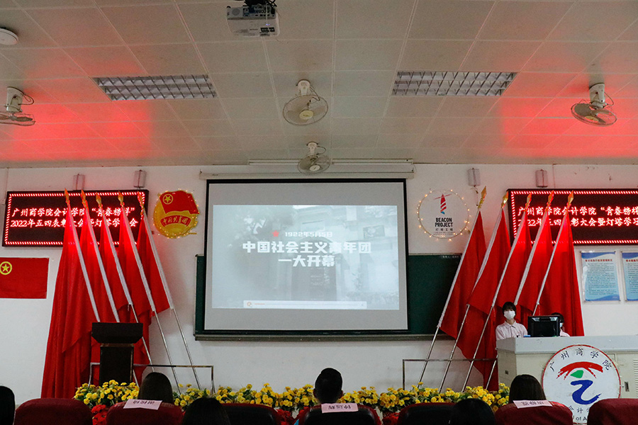 为深入学习贯彻习近平总书记在庆祝中国共产主义青年团成立100周年大会上的重要讲话精神,表彰先进集体与优秀个人,增强对会院学子的凝聚力、组织力、号召力,会计学院于2022年5月26日16:00在第二报告厅召开喜迎二十大,永远跟党走,奋进新征程——广州商学院会计学院“青春榜样”2022年五四表彰大会暨灯塔学习会。会计学院党总支书记钟远辉、会计学院团委书记谢桉琦、会计学院学生会指导老师唐静霓、各年级辅导员以及各获奖代表出席本次会议。