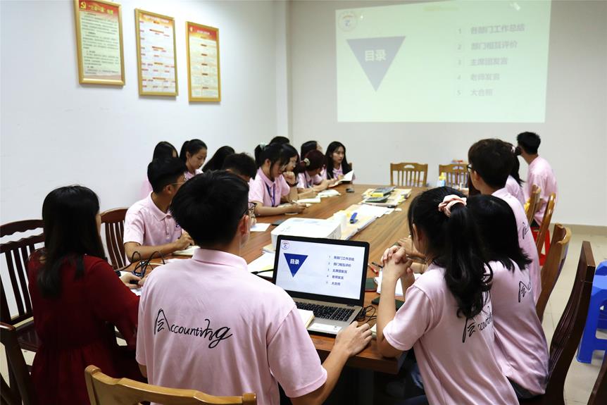 为落实高校学生会深化改革,促进新一学年工作的顺利开展,对开学以来的各项工作加以总结,分析和研究工作中出现的问题,得出经验教训,进一步完善学生会的工作,会计学院学生会于2020年9月27晚在第二行政楼214召开会计学院学生会第一次总结会议。出席本次会议的有会计学院学生会指导老师唐静霓、会计学院学生会主席团以及会计学院学生会各部门干部。