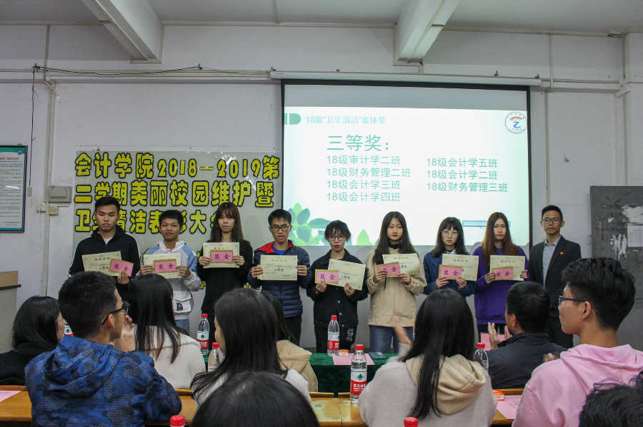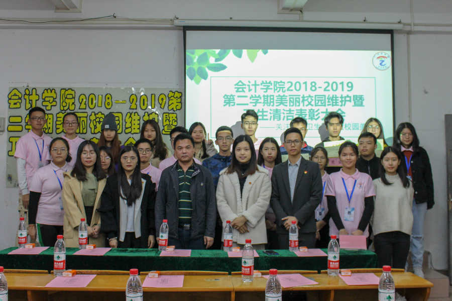 为进一步促进学校“文明、修养、形象”教育活动向纵深发展,共同维护和营造美丽的校园卫生环境,鼓励广大学子积极参与校园卫生的清洁工作,会计学院学生会近日举行会计学院2018-2019第二学期美丽校园维护暨课室卫生清洁表彰大会。学院党总支书记钟远辉、团委书记廖秀娟、学生会指导老师张振华、辅导员邓雪梅、陈欣及班级实践委员参加本次表彰大会。