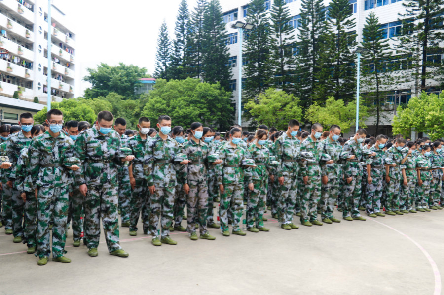 九点十八分,在军训训练场上,教官及全体新生脱军帽,在场全体神色肃穆,低头默哀一分钟。默哀完毕后,钟远辉在总结讲话时向全体新生讲述了有关于“九一八事变”的历史背景、事件经过以及中华儿女奋起抗日、保家卫国的英雄壮举。并提醒同学们一是要始终牢记历史,勿忘国耻;二是希望同学们能够树立起远大理想,刻苦学习,强健体魄,练就一身过硬的本领,报效祖国;三是牢记国家所赋予新时代青年的历史使命,将个人梦融入到祖国伟大的中国梦中,振兴中华。