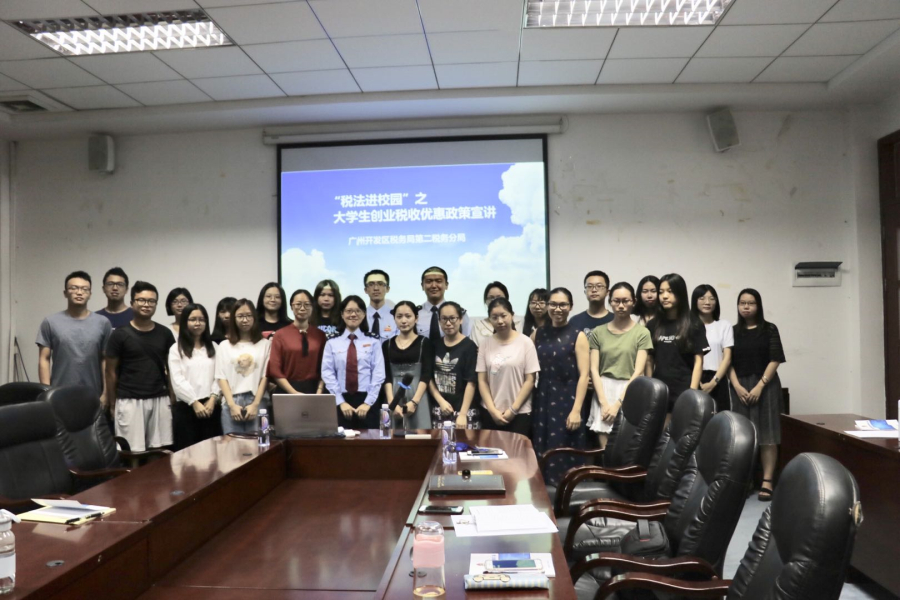 为让应届生充分了解创业税收优惠政策,9月27日上午10点,广州市开发区税务局第二分局副局长侯嵬,科长容梦丹,王臣斌来到广州商学院,举办了“税法进校园”大学生创业税收优惠政策宣讲会。宣讲会第二行政楼308举行,由会计学院毕业班辅导员蓝乐钿主持,会计学院教师赖湘兰及20多名有创业意向、已经在参加创业实践的学生参加。
