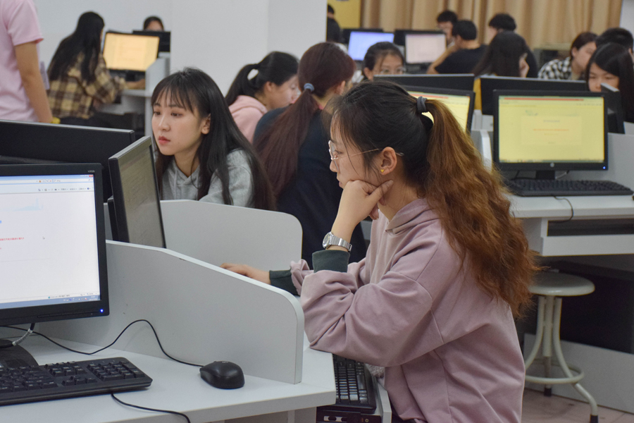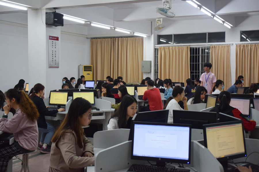 主持人宣布正式答题,选手们开始答题,在激烈的比赛过程中,选手们认真思考专注于竞赛,现场只留下干脆利落的鼠标声。在激烈的角逐后,选手们相继完成了答卷,作答完毕后纷纷交卷并有序离场。