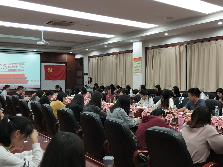 会议上,吕佳慧等15名重点发展对象从思想上、学习上、工作上、生活上等情况依次向党组织进行汇报。汇报完毕后,第一介绍人与第二介绍人向党组织介绍志愿人的情况;与会党员充分讨论志愿人的思想、工作、学习等方面情况;随后志愿人对支部党员提出的意见或建议表明自己的态度进行。紧跟着,全体正式党员移步到第二行政楼214进行无记名投票。党支部严格按照党员发展程序,经过严格考察,充分讨论和表决,一致同意吕佳慧、戴如闯、罗金玉、林佩虹、张鑫、蔡绵荣、吴佳娜、郑依琳、魏莉、卢颖怡、戴文媛、余冰银、冼嘉慧共13名重点发展对象顺利发展成为中共预备党员,由蓝乐钿同志宣读支部决议,并由党员为预备党员戴党员徽章,接着,与会全体同志宣誓入党誓词。