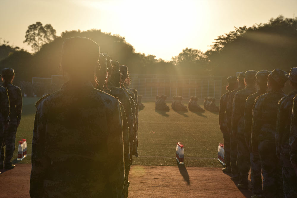 新生们今日的精神状态的提升,相信和昨天余浩院长与钟远辉书记的慰问有着极大的关系。培养集体意识,锻炼坚强意志,学习军队精神,新生们显然将这些叮嘱牢记于心。为了集体的荣誉感而更努力地将动作做得最标准,汗流浃背、戎装湿透却依然稳稳站如松、坐如松、行如风,遵循着教官们的指令,举手投足间带上了军人风范,无论是训练还是休息,都严守着组织的纪律,坚决服从命令。阳光照耀着他们坚定的脸庞,愈发响亮的口号中洋溢着他们青春的光彩。