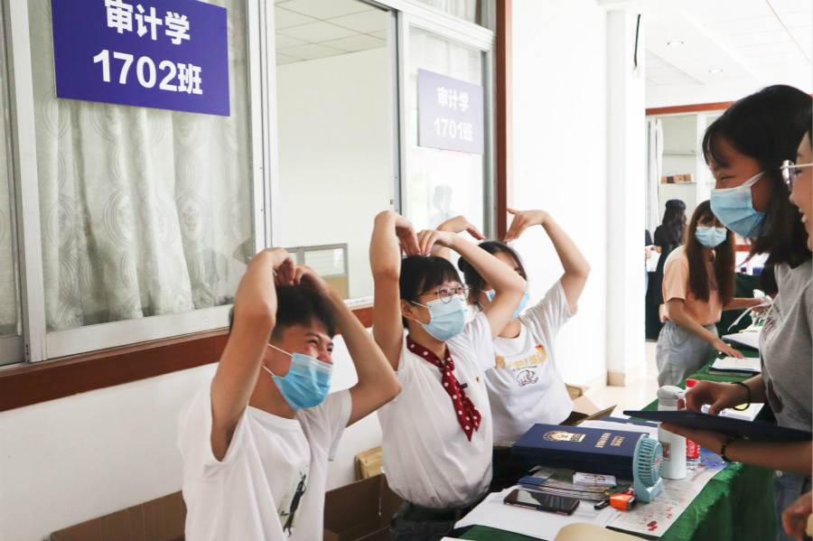 会计学院通力配合、提早部署,提前对毕业生文明离校工作做了总体安排,明确毕业生离校工作中的具体职责。前期,21级助理辅导员协助毕业班辅导员整理毕业生材料,此外,学院通过推文的形式线上招募毕业生离校工作志愿者,招募的志愿者们就毕业生离校流程、领取毕业证、搬运行李及疫情防控措施等做了系统学习,划分落实好各区域各时段的负责人。毕业生离校当天,各个站点的志愿者们提前到达所在岗位,布置服务现场,并在工作人员的带领下有序进行签到,为志愿服务工作做好准备。