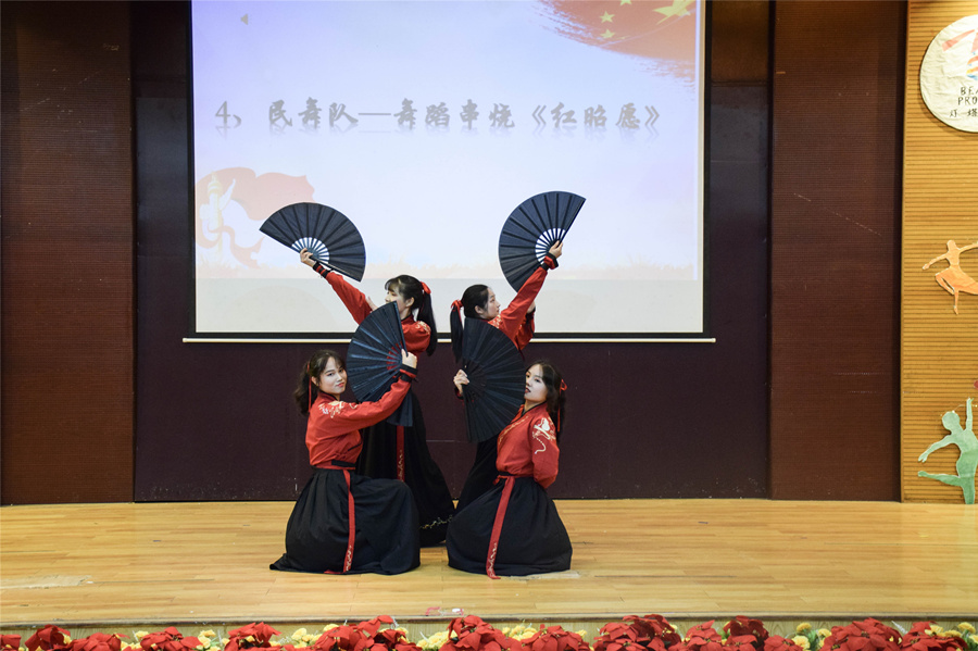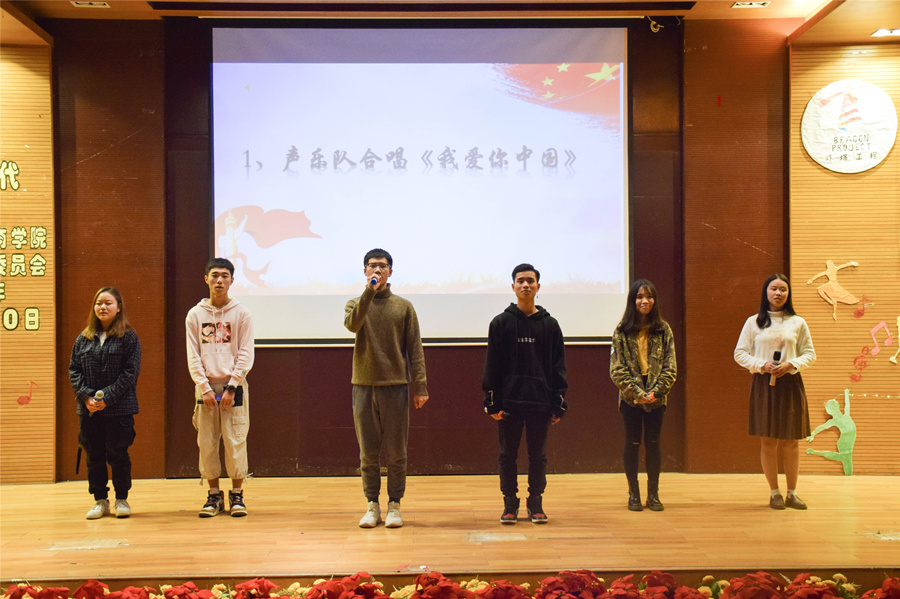 活动伊始,主持人对本次活动进行开场致辞。随后,全场肃立,奏唱团歌。接下来由会计学院艺术团为我们带来精彩绝伦的表现。参与活动演出的一共有四支队伍,分别是戏剧队,声乐队,爵士队和民舞队。声乐队为大家带来合唱《我爱你,中国》,歌声中的深厚感情蕴含着对祖国母亲情深意切的自豪,歌曲串烧部分让我们在回忆过去的故事的同时,展望未来,最后表演的独唱曲目《safe &sound》,歌者空灵而又充满力量的歌声向大家传递了“苦难总会终结,坚强之人永存”的信念。戏剧队为我们带来了两个精彩的小品表演,充满温情的小品《1978的你》将我们拉回那个改革开放之花初绽放的时代;《改革之风》在宣扬着改革开放以来法制建设的不断完善的同时,为全场带来了欢声笑语。爵士队为我们带来《I like it》,《finesse》和《God is woman》三支舞蹈,生动传神的动作引来现场阵阵欢呼喝彩,充满热情的舞蹈点燃了观众们的热情。民舞队带来的《红昭愿》和《牵丝戏》则是与爵士队风格截然不同的舞蹈,充满古典韵味的服装道具为大家展示了中华传统文化的博大精深,行云流水的动作和默契的配合让人目不转睛。