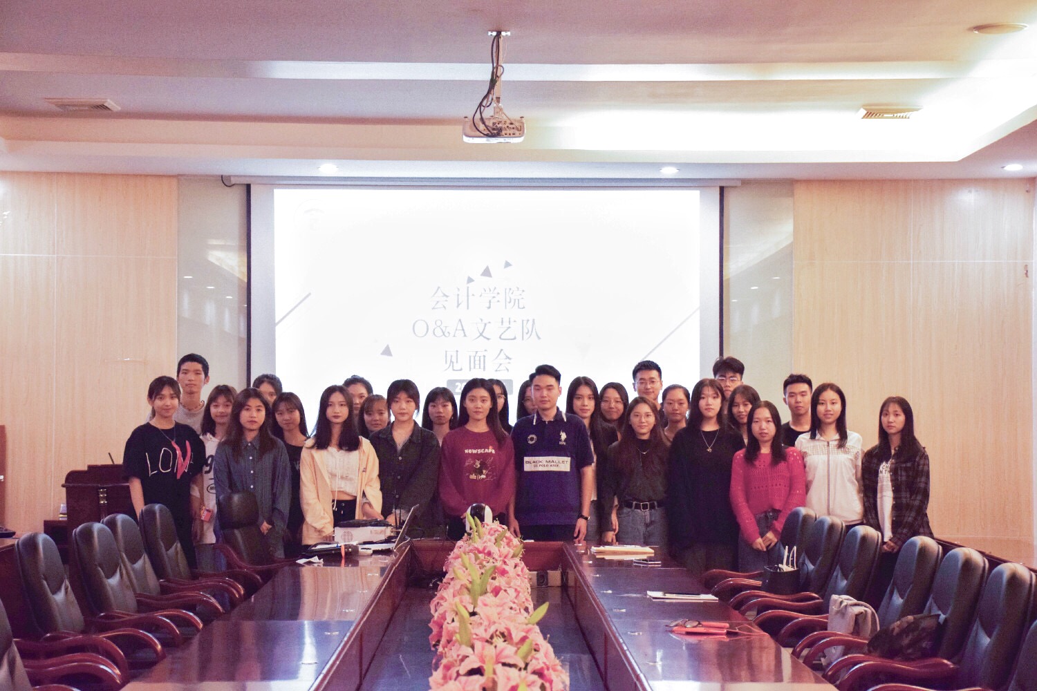 为促进队员的相互了解,增强对队伍的归属感,明确自身职责,会计学院O&A文艺队于2020年11月3日晚19:00在二政208召开会计学院O&A文艺队见面会。出席本次会议的有会计学院团委书记、O&A文艺队指导老师谢桉琦和文艺队全体队员。
