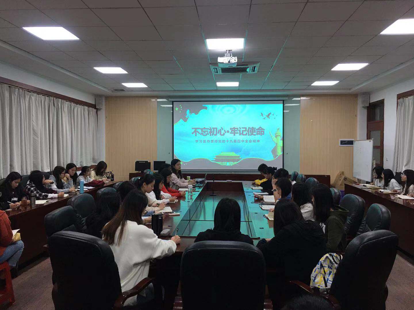 支部书记廖秀娟为本次学习会作总结。她表示党的十九届四中全会的胜利召开为我们扎实开展工作又注入了强大的推动力,要坚持学思践悟、学懂弄通、学以致用,用先进思想武装头脑、指导实践、推进工作,更要把贯彻党的十九届四中全会精神与正在开展的“不忘初心、牢记使命”主题教育紧密结合起来,深刻领会全会精神,贯彻落实到学习工作中去,掌握更多的报效祖国的本领。作为学生党支部书记和一名辅导员,也必定谨记“立德树人”的根本任务,坚定“四个自信”,也要知行合一做表率,通过自身的努力,培养更多理想信念坚定,政治素养过硬的时代接班人。