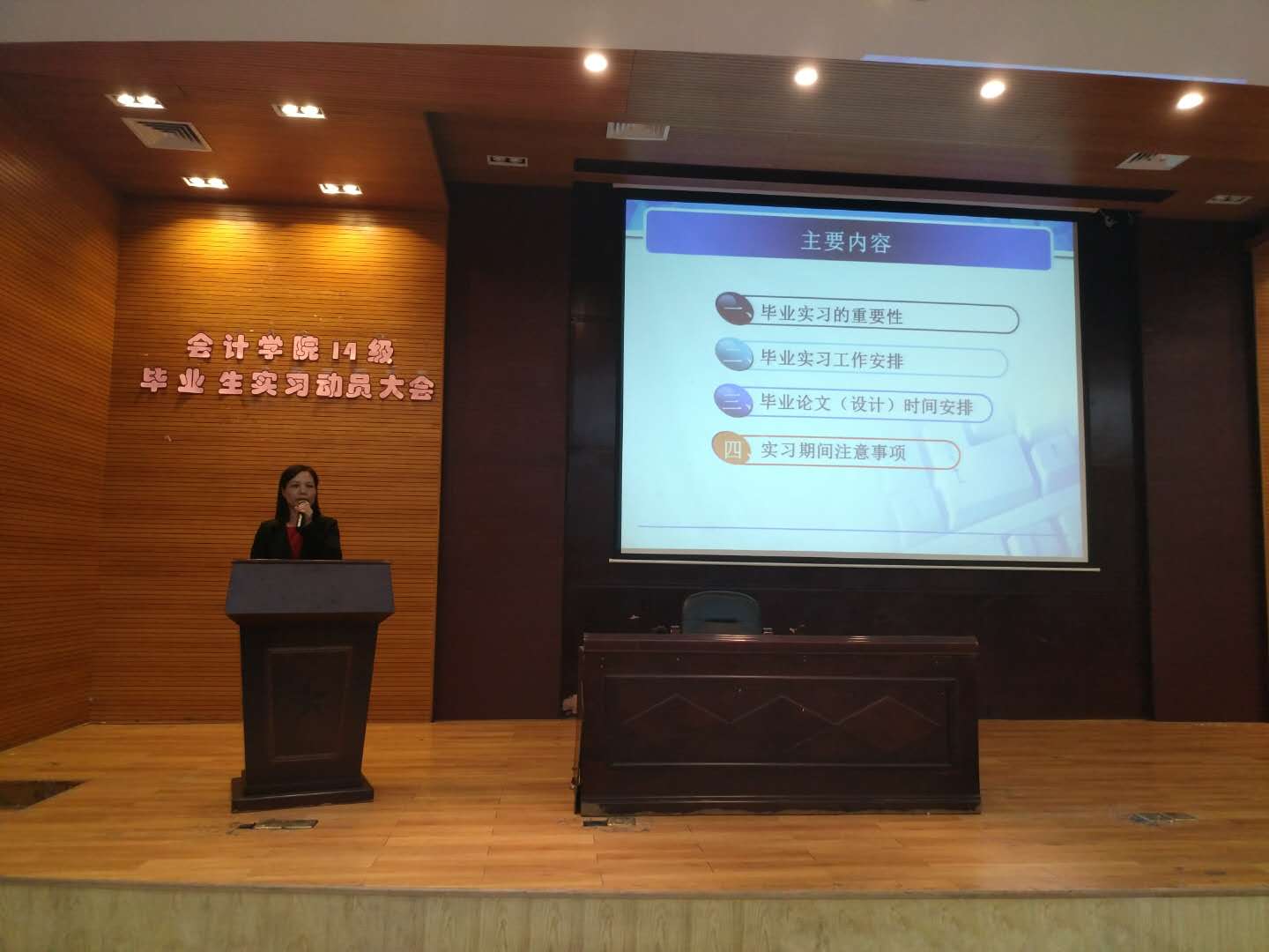 此次毕业实习动员大会,为即将参加集中实习的同学们提供指导,体现会计学院对同学们职业发展的重视。同时,也使同学们对本次实习有更加清晰的了解,更有信心去迎接即将到来的机遇与挑战,为将来的就业打下坚实基础。
