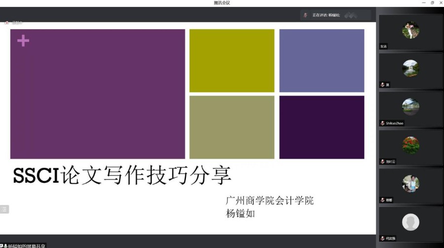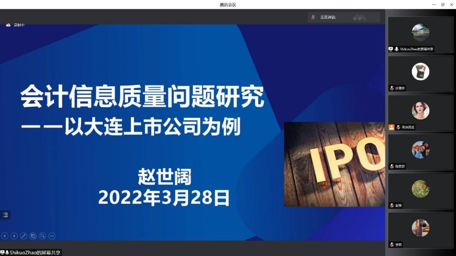 为了营造良好的学术氛围,提高教师的学术热情,会计学院于2022年3月28日晚通过腾讯会议形式成功举办首期博士学术沙龙活动。本期沙龙的主题为:会计信息质量问题研究——以大连上市公司为例、SSCI论文写作技巧分享,分别由赵世阔博士、杨镒如博士主讲。会计学院领导和大部分中青年教师参与了此次学术沙龙活动。